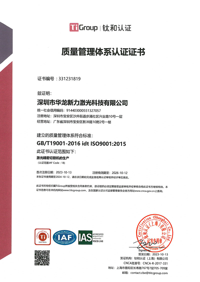 質(zhì)量管理體系認(rèn)證證書